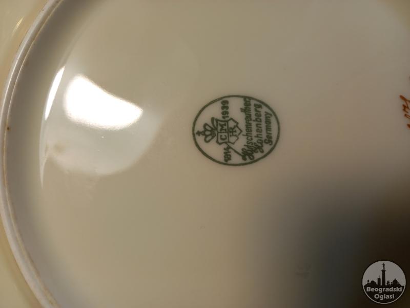 visenamenska porcelanska cinija. proizvodjac nemacka familijarna firma Hutschenreuther iz grada Hohenberg, Bavarija, Nemacka. osnovana 1814. cinija je proizvedena izmedju 1939. i 1945. precnik 27cm.