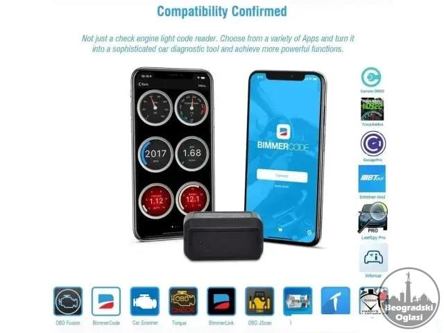Kompatibilne APLIKACIJE (više dostupno na App Store-u i Google Play-u; može zahtevati posebnu kupovinu) OBD Fusion, Torque Lite/Pro (samo za Android), DashCommand, BimmerCode, BimmerLink (samo iOS), Carista OBD, JScan, Dash, OBD Auto Doctor, TrackAddict, LeafSpy Pro, Dr. Prius, Harry's LapTimer, OBD Fusion, DashCommand, OBD Auto Doctor, itd.